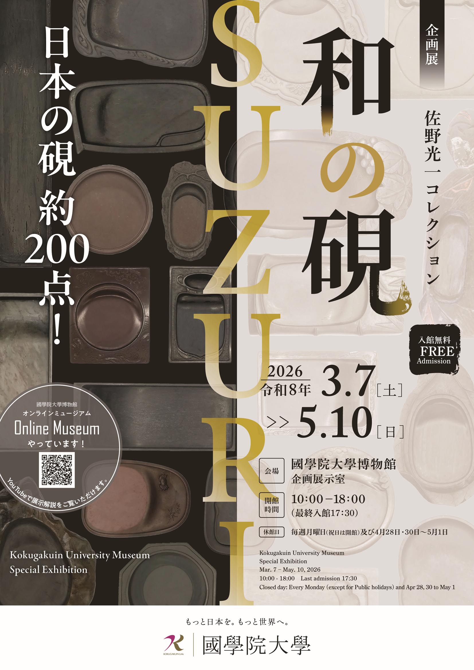 2026年春は東京渋谷の國學院大學に注目! 3月7日に開幕・開催される文房四宝「筆」と「硯」の特別講座と展覧会 日本の筆と硯に接するめったにない機会。午前中は「硯」、午後は「筆」で満喫?
